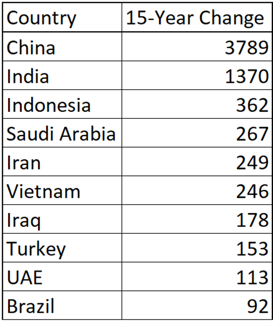 توجه داشته باشید که افزایش انتشار گازهای گلخانه ای چین 60 درصد بیشتر از مجموع کاهش ده کشور در جدول قبلی بود و این عامل اصلی افزایش انتشار کربن در جهان است.